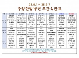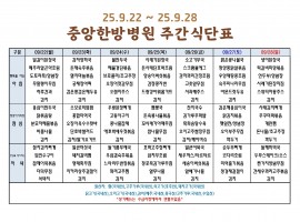 9월 15일~ 9월 21일 중앙한방병원 입원식단, 암 환자식
