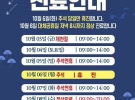 25년 10월 추석연휴, 공휴일, 임시공휴일 진료 시간 안내