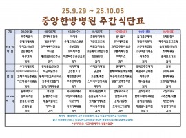 9월 29일~ 10월 5일 중앙한방병원 입원 식단, 암 환자 식단