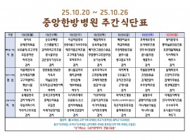 10월 13일 - 10월 19일 중앙한방병원 입원식단, 암환자식단