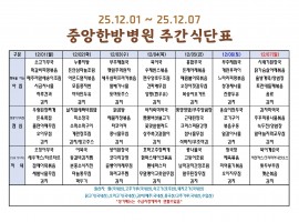 12월 1일~ 12월 7일 중앙한방병원 입원식단, 암 환자식단