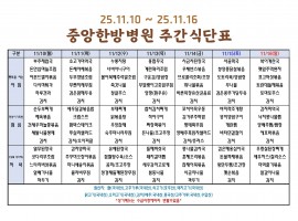 11월 3일 - 11월 9일 중앙한방병원 입원식단, 암환자 입원 식단
