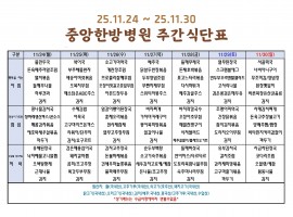 11월 24일~ 11월 30일 중앙한방병원 입원식단, 암 환자식
