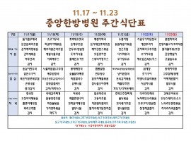 11월 17일 - 11월 23일 중앙한방병원 입원식단, 암환자식단